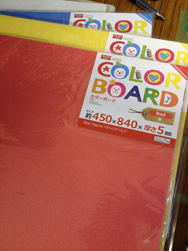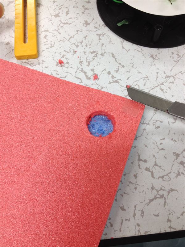 フタは青と赤2枚のスチレンボードを貼りあわせてあるので、