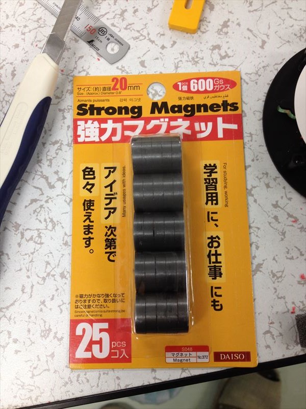 購入した磁石。ダイソーにて25個入り105円。消費税8%は2014年4月1日から。