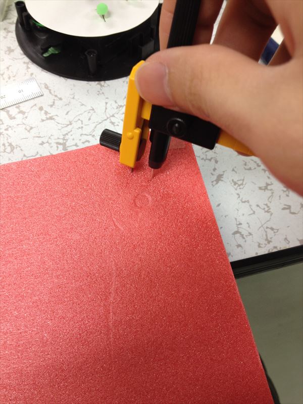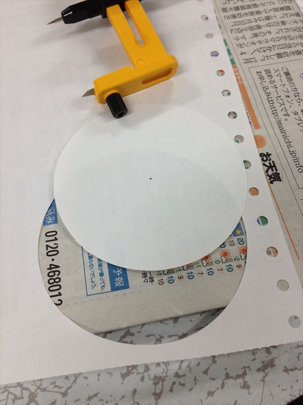 反射材は直径80mmくらいがちょうどいいと分かったので、コンパスカッターで紙を切り出す。