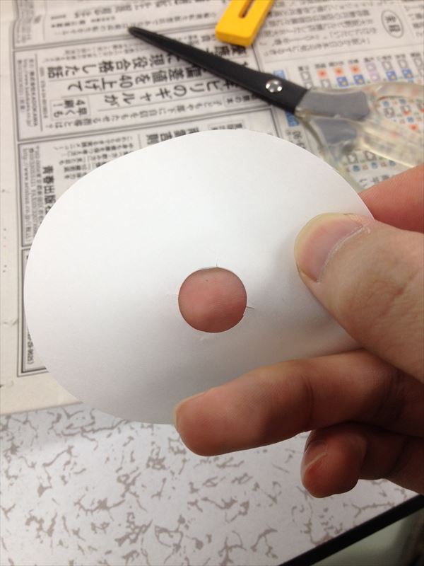 小さすぎてコンパスカッターが使いにくいのとこれ以上穴を開けると汚くなりそうだったので保留。