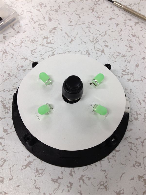 9ボタンのベースとして使ったダイソーLEDライトは元々、中に白い厚紙が入っていて光を反射する構造になっていた。