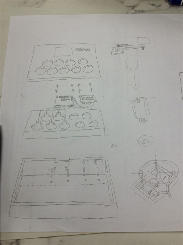 しかしこれも1つだけ組み上げてボタンを押してみたところ、どうもヘコヘコして感触がよくない。
