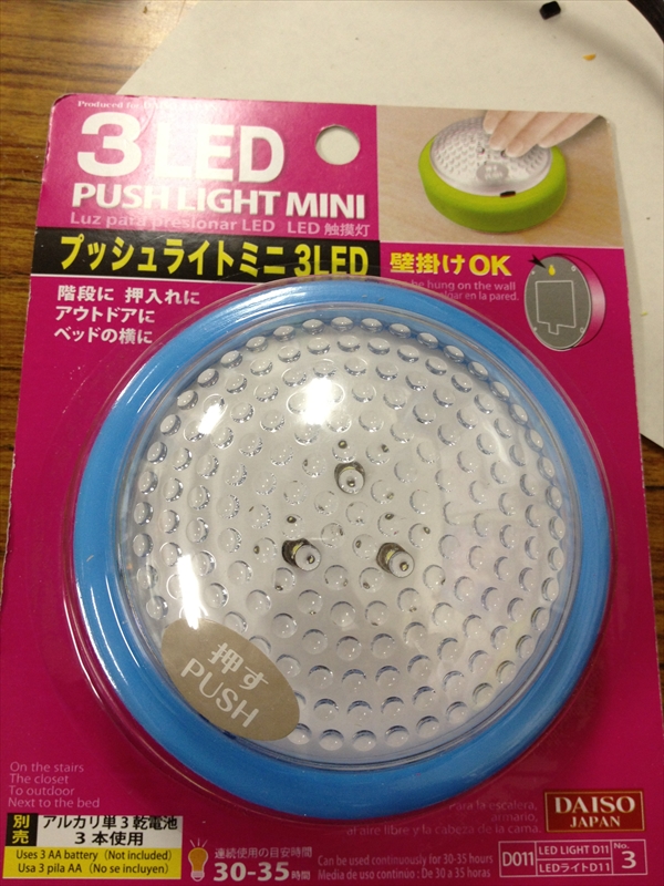 9ボタンのベースとして使ったダイソーLEDライトは元々、中に白い厚紙が入っていて光を反射する構造になっていた。